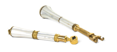 Two French Mother-of-Pearl Veneered Opera Glass Holders,