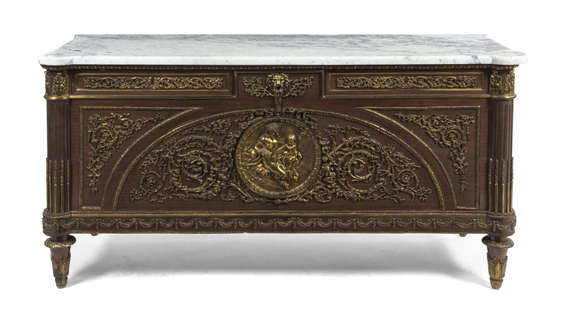 A Louis XVI Style Gilt Bronze Mounted Commode, after a model by Guillaume Benneman,