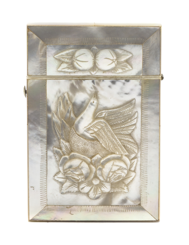 A Carved Mother-of-Pearl and Ivory Banded Card Case,