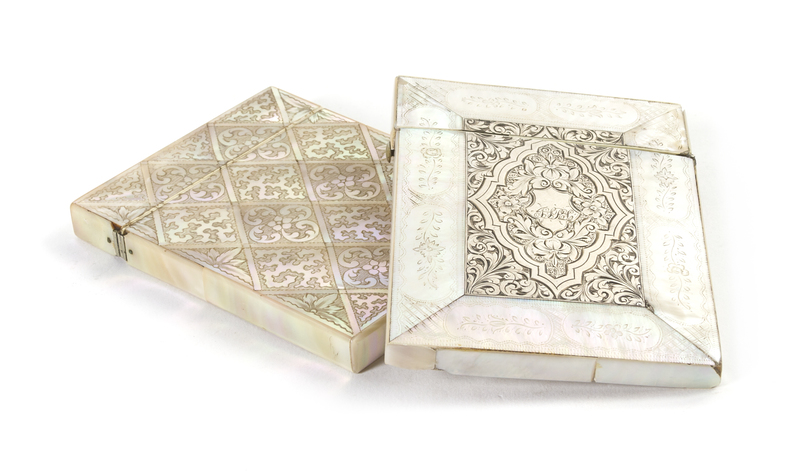 the first with allover diamond decoration, the second inset with a silvered plaque.