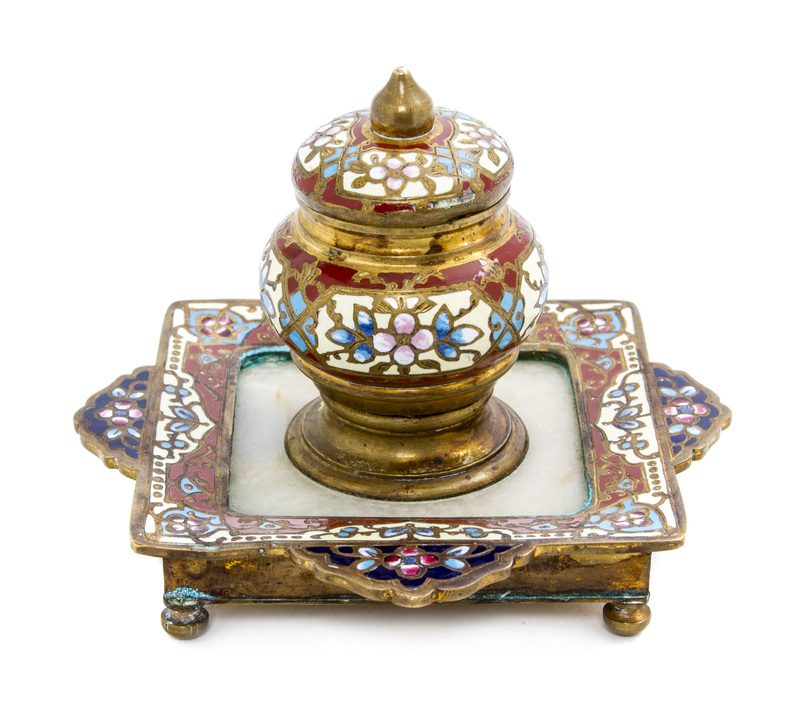 A French Champleve and Alabaster Inkwell,