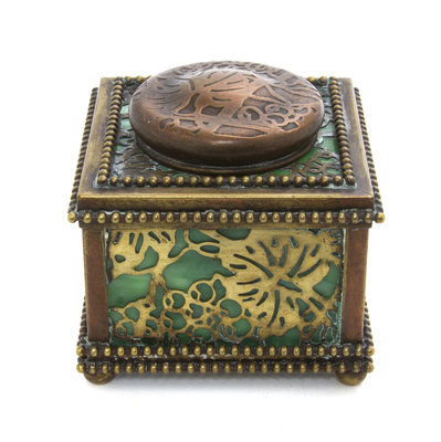 A Tiffany Studios Gilt Bronze and Favrile Glass Inkwell,