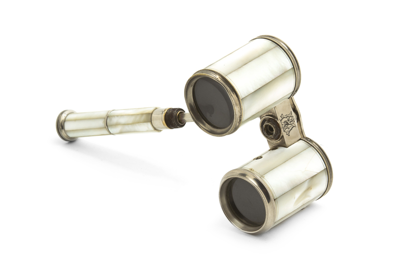 A Mother-of-Pearl Veneered Binocular Mounted Cane,