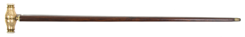 the mount having incised allover foliate decoration, raised on a tapering rosewood shaft, ending in a brass and steel ferrule.