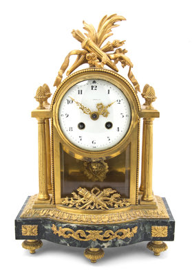 A French Gilt Bronze and Marble Mantel Clock, retailed by J.E. Caldwell & Co.,