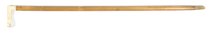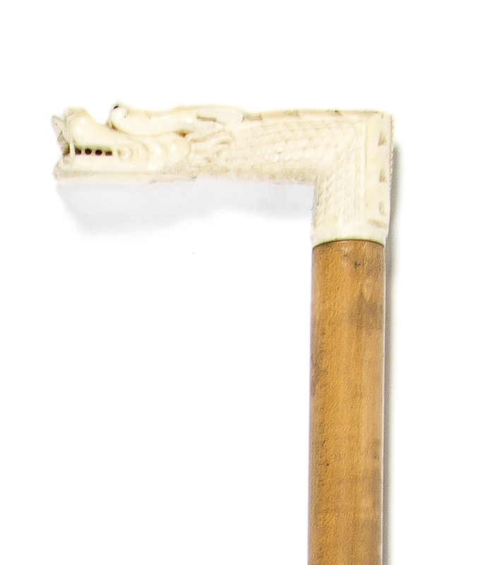 in the form of a dragon, with pearl in mouth, set on a tapering maple shaft ending in a horn ferrule.