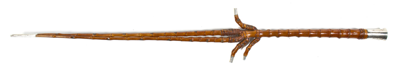 the silvered metal handle over the shaft with five root extensions, each having a silvered metal cap.