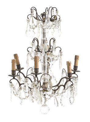 A French Cast Metal and Glass Six-Light Chandelier,