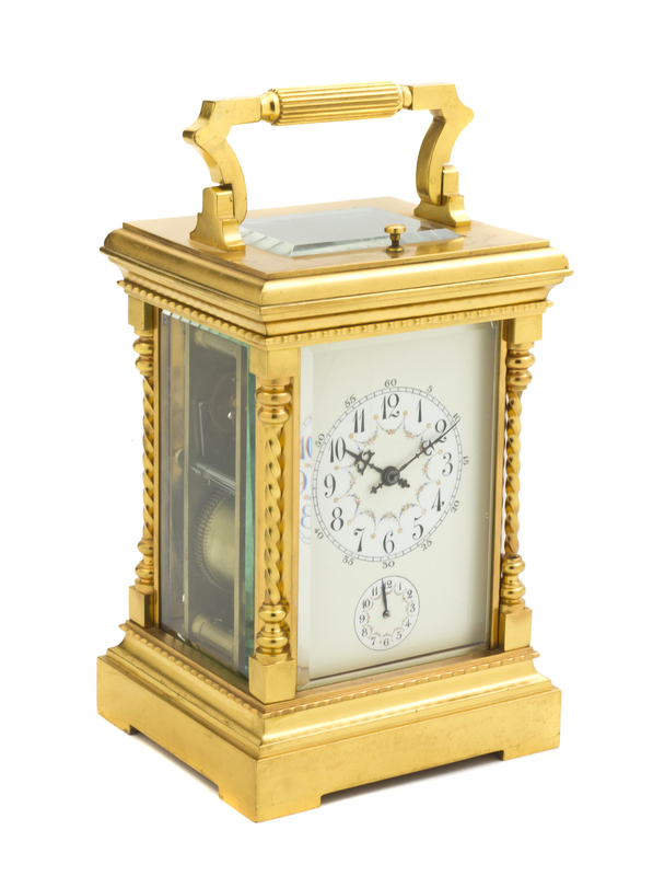of rectangular handled form, having time, strike and alarm movement.
