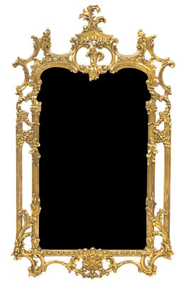 20th century, having a pierce carved foliate and pagoda crest over the shaped rectangular vertical plate.