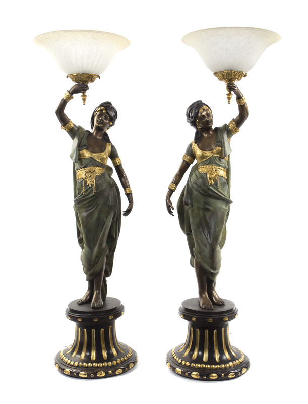 A Pair of Continental Cold Painted Metal Figural Torchieres,