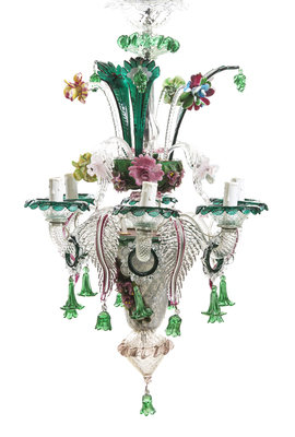 of baluster form with polychrome foliate leaf decoration, hung with bell flowers throughout.
