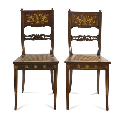 A Pair of Dutch Marquetry Side Chairs,