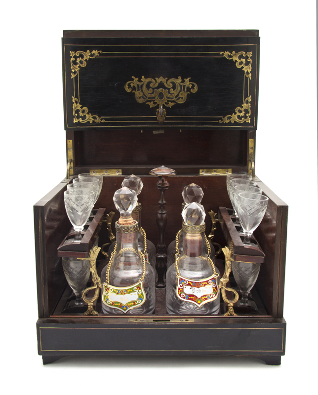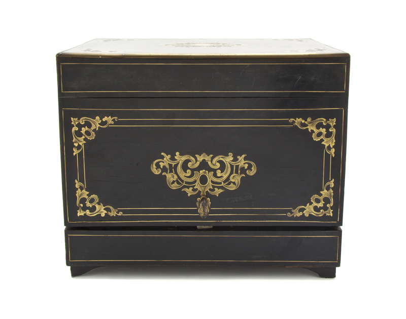 A Continental Ebonized and Brass Inlaid Cave a Liqueur,