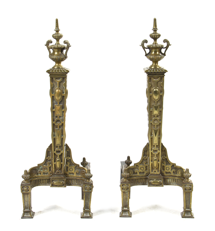 A Pair of Neoclassical Bronze and Iron Andirons,