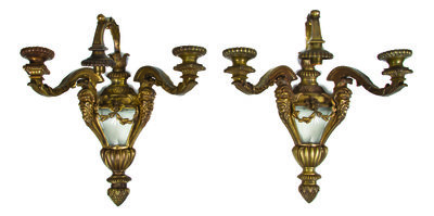 A Pair of Neoclassical Gilt Bronze Four-Light Sconces,