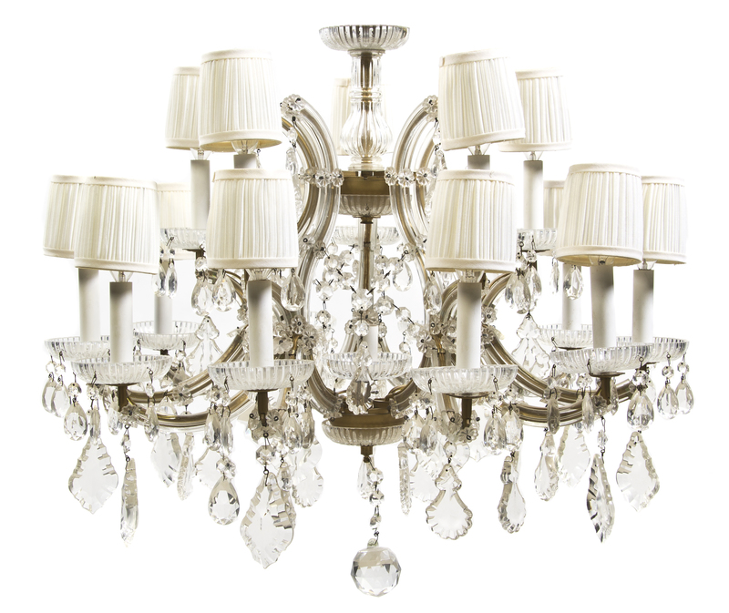 A Continental Cased Glass Fifteen-Light Chandelier,