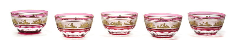 A Set of Twelve Bohemian Cranberry Cut-to-Clear Glass Bowls,
