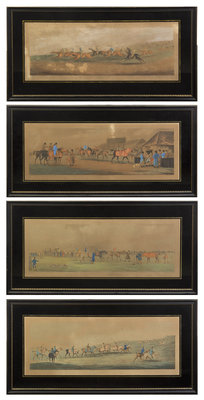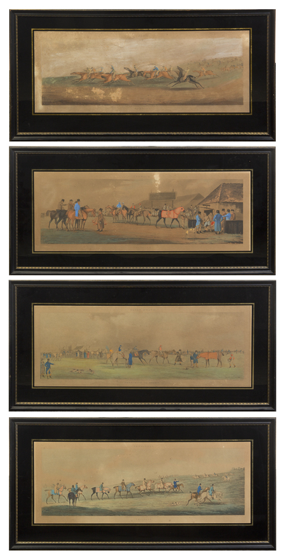 engraved by Sutherland, titled Weighing, Preparing to Start, Training and Running, matted and framed uniformly.