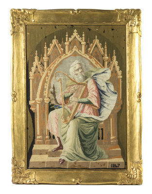 depicting David beneath an arch playing a harp, dated lower right 1867, set in a giltwood frame.
