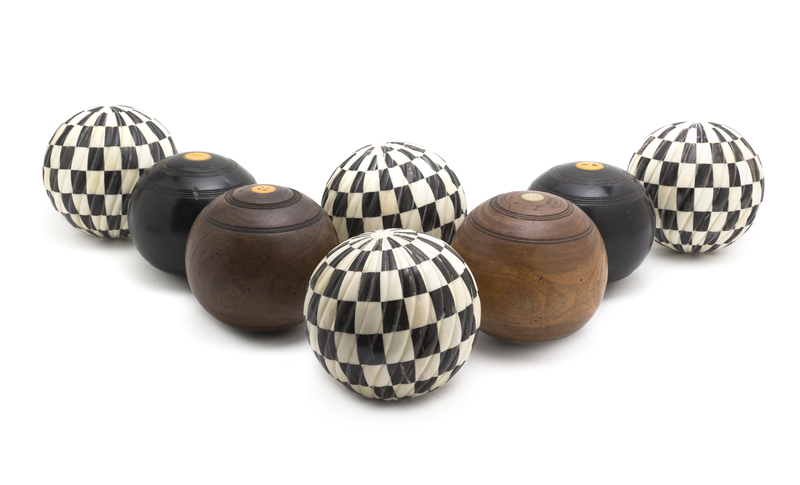 comprising four with ivory and shell inlay, the others of turned wood with ringed decoration.