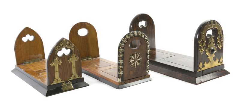 An English Burlwood and Brass Banded Collapsible Book Stand, Betjemann's,