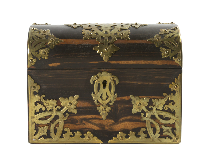 A Victorian Brass Banded Calamander Wood Tea Caddy,