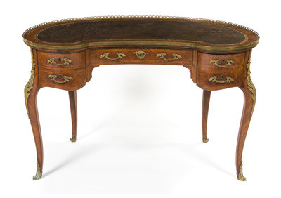 A Louis XV Style Burlwood and Gilt Metal Mounted Bureau Plat,