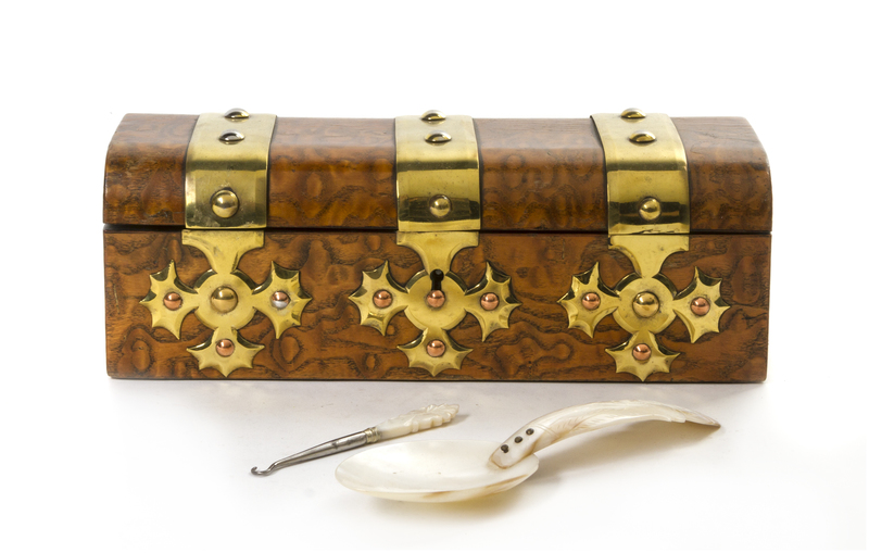 A Victorian Brass Banded Burlwood Box, Parkins & Gotto,