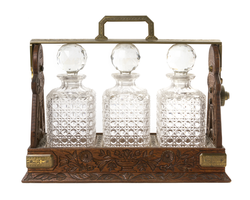 A Victorian Oak and Brass Tantalus, Betjemanns,
