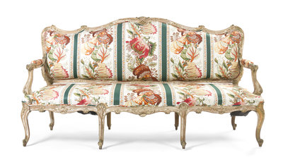 A Louis XV Style Carved and Polychrome Decorated Canape,