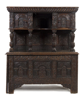 A Elizabethan Style Carved Oak Court Cupboard,