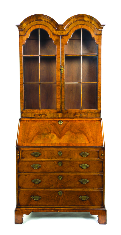 A Queen Anne Style Walnut Double Domed Secretary Bookcase,