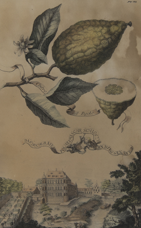 comprising a set of four depicting lemons, together with an associated example depicting leafy branches.