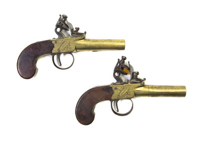 A Pair of English Pocket Flintlock Pistols, Blair & Little,