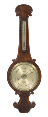 An English Mahogany Wheel Barometer Thermometer, T.U. Gray,