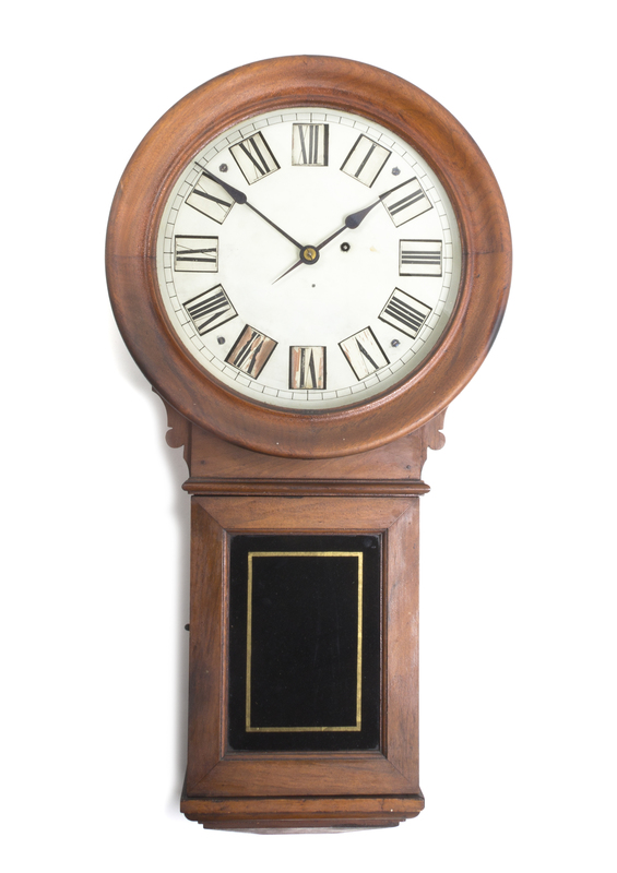circa 1885, regulator #70, having a circular dial with Roman numerals one through twelve and Arabic numerals 13 through 24, set on rotating blocks.