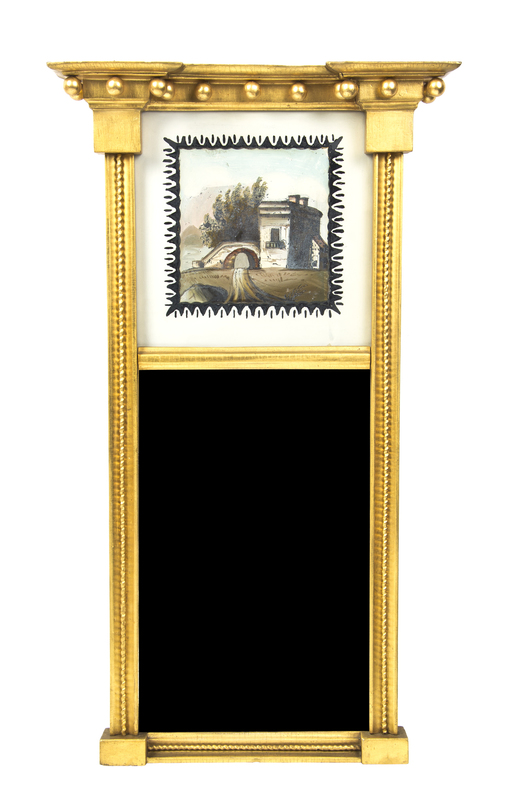 An American Giltwood and Reverse Painted Glass Tablet Mirror,
