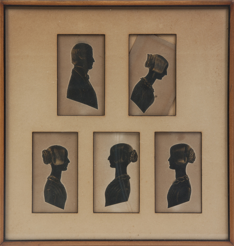 A Set of Five Cut and Paste Profile Bust Silhouettes, in the manner of Frith,