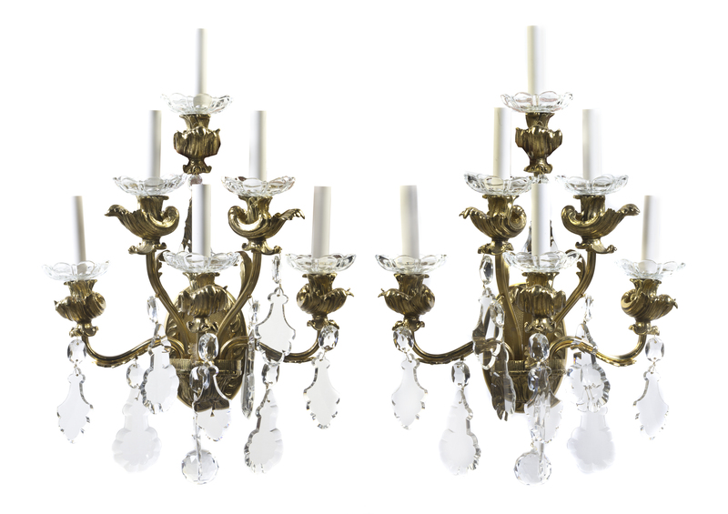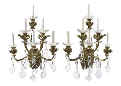 A Pair of American Brass Six-Light Wall Sconces, New Metal Craft,