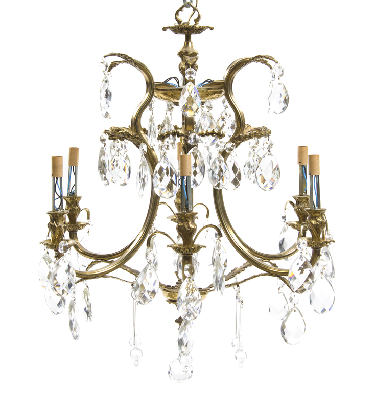 An American Brass Six-Light Chandelier, New Metal Craft,