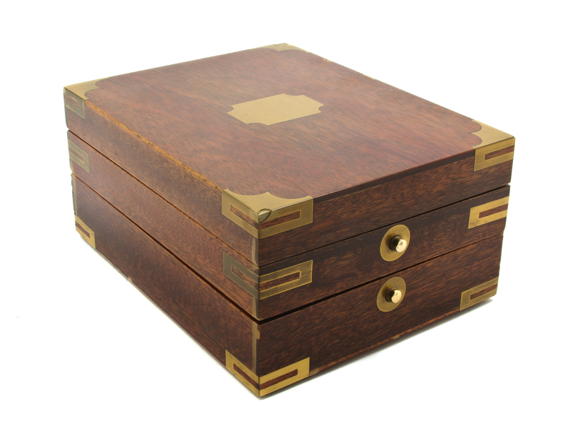 serial number 1802202, set in a three part hinged case, the circular dial with Roman numerals.