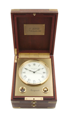 A Patek Philippe Brass and Mahogany Electronic Marine Chronometer, Naviquartz,