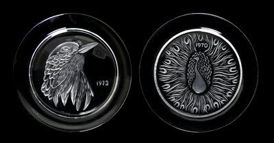 comprising Poan, dated 1970 and Petit Geai, dated 1973, each signed Lalique France.