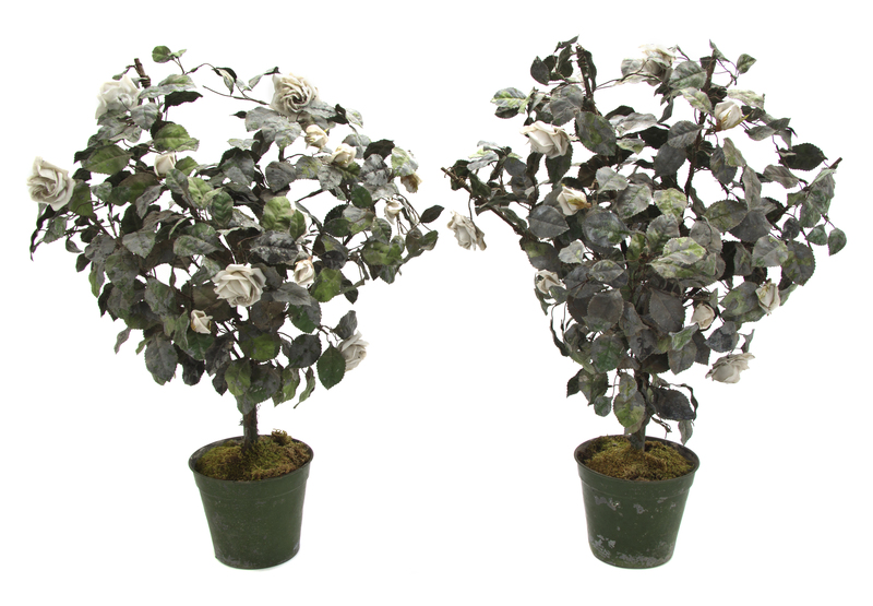 A Pair of French Tole Topiary Models of Rose Bushes,