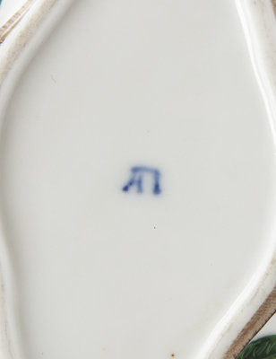 19th century, each having polychrome leafy branch decoration throughout with branch form handles and finial, having Cyrillic mark in underglaze blue to base.