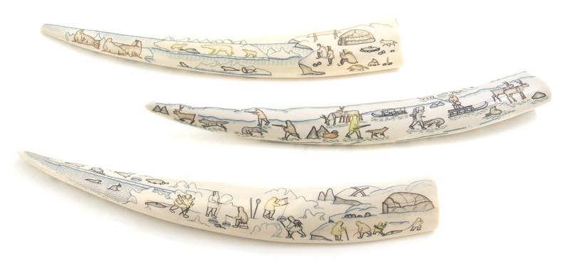 with incised polychrome decoration depicting a walrus hunt and figures performing various tasks.