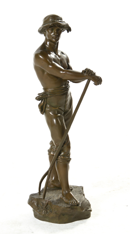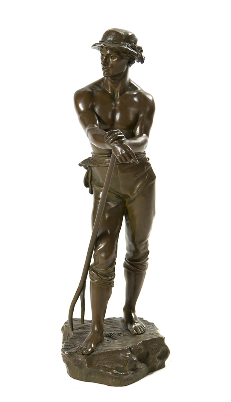 Faneur, depicting a standing male figure holding a pitchfork, raised on a naturalistic base, titled and signed C.H. Levy, Salon des Beaux-Arts, further impressed with two seals, one reading F.P. Sanson Succ.r Hamburg, the other reading Bronze Garanti au Titre L.V. deposee, numbered 5999.