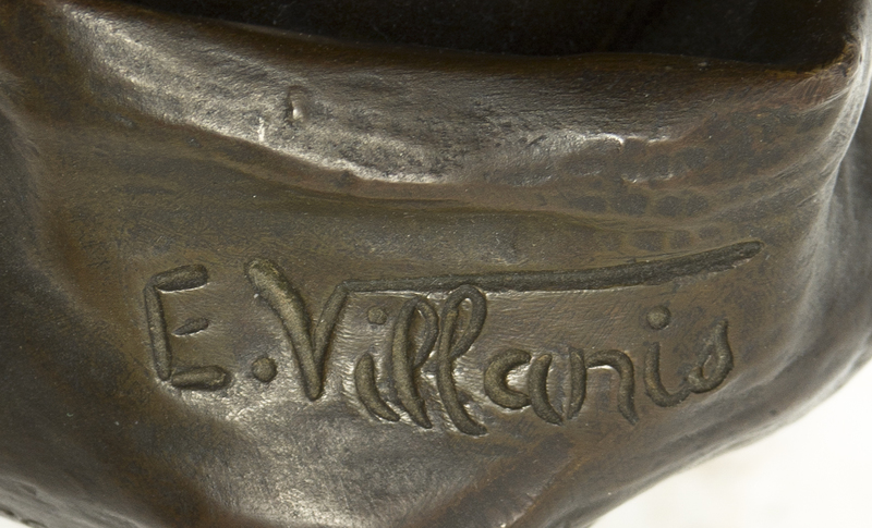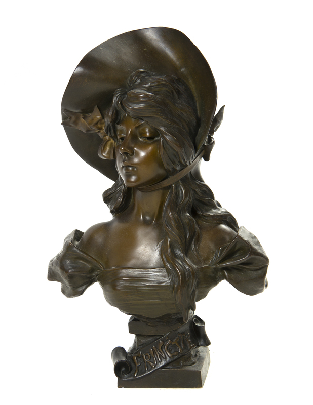 Frinette, depicting a maiden wearing a bonnet, raised on a square base, further impressed with a seal reading Bronze Garanti au Titre L. V. Deposee and numbered 7953, signed to one sleeve.