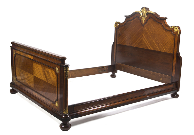 A Louis XV Transitional Style Kingwood, Mahogany, Parquetry and Gilt Bronze Mounted Bed,